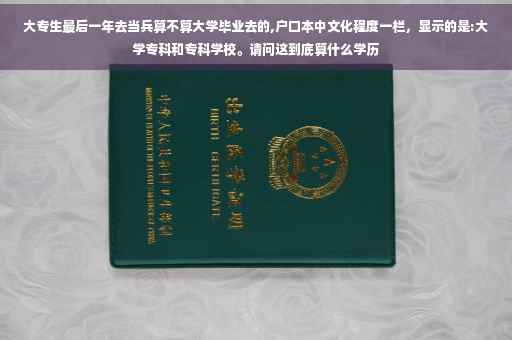 大专生最后一年去报名参军入伍,不算大学毕业去当兵。大学毕业生是指已经取得了大学毕业证书,一定意义上说,大学毕业生已经不是大学生了。大专毕业生是指大学生经过三年的大学校园学习,取得了大专文凭的毕业证书。而大专生最后一年去参军入伍,也就是说完成了两年时间的大学学习,还没有取得大专文凭的毕业证书。所以说,还不算大学毕业去当兵。