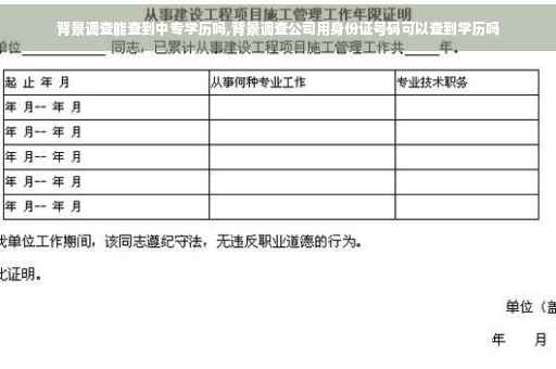回答:背景调查公司总身份证号码可以查到学历信息。查询学历信息只需要在学信网提供被查询人正确姓名以及身份证号码就可以,直接登陆学信网官网,选择零星查询,输入被查询人姓名,身份证号码,再通过自己手机号码接收验证码确认查询即可。