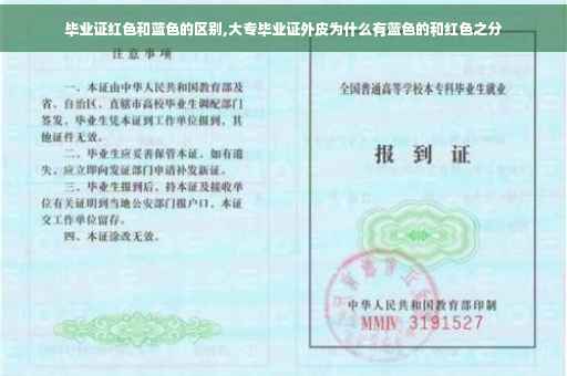 教育部门为了区别毕业证的种类,才有了蓝色的和红色外皮之分,四年制在校学习毕业为红色(就是参加普通高考正规录取的国家普通高校应届毕业),其余的什么函授、夜大之类毕业的都是蓝色!!!