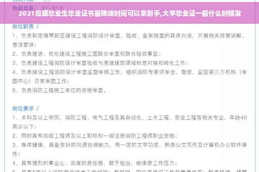 2021年应届毕业生的毕业证书一般是6月份到7月份之间发放到学生本人手中。众所周知,学生的毕业年限一般是四年,毕业时间一般安排在6月份左右,但是也有少部分学校因为自己特殊的时间安排而导致学生在7月份之后才能拿到毕业证和学位证,但并不会影响学生的就业。