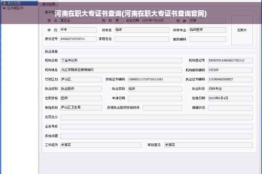 大家好,关于河南在职大专证书查询的问题,于是小编就整理了5个相关介绍河南在职大专证书查询的解答,让我们一起看看吧。