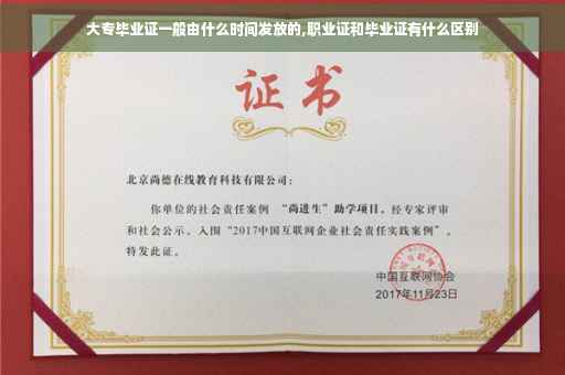 大专毕业证一般一般在每年的6月份发放,各个学校时间可能会不一样,但差别不会很大。专科一般指大学专科(高职高专)教育,是我国高等教育的重要组成部分,是大学的学历层次之一。区别于本科,大学专科教育主要由高职(高等职业技术学院)和高专(高等专科学校)承担,部分本科高校亦开设有专科。专科层次不颁发学位,毕业颁发专科毕业证书。高职和高专都属于普通高等教育的专科层次,前者偏技术,后者偏理论,侧重点不同,无本质差别。两者培养目标是统一的,在完成中等教育的基础上培养出一批具有大学知识,又有一定专业技术和技能的高级技术人员,其知识的讲授是以够用为度、实用为本,两者招生是并轨的。