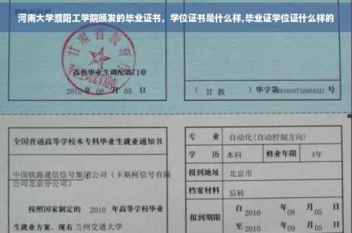 答: 河南大学濮阳工学院颁发的毕业证书和学位证书与河南大学本校颁发的证书是相同的,上面印有河南大学的标志。