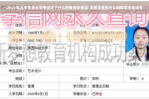 高中毕业证一般毕业当年的七月份即可发放,所以2021年的高中毕业证应该在七月份发了;高中毕业证需要学业水平考试测试合格才能取得高中毕业证书,如果考上大学并取得大学学位学历,,高中毕业证书意义就不算太,但没考上大学就特别有用。