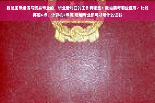 六是从事教学研究。 考证,英语六级、计算机二级是必要的,尤其外语等级分数越高越好。其它专业证书,并不太重要,近年国贸岗位对证书并没有要求,做外贸外销员、跟单员、报关员、外贸会计等证书也可考虑考一下。如果将来打算进入金融机构就业,可考银行从业资格、证券从业资格、基金从业资格。