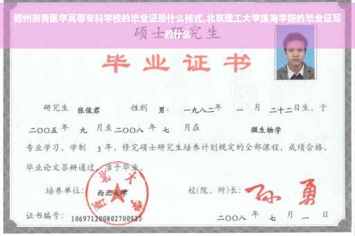 郑州澍青医学高等专科学校的毕业证是一种证明毕业生已经完成学业、取得学位的证书。通常为A4大小,由校方颁发给学生。其格式包括以下内容: