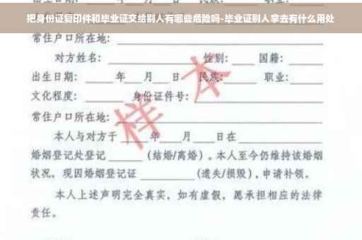 回答如下:将身份证复印件和毕业证交给别人有以下危险: