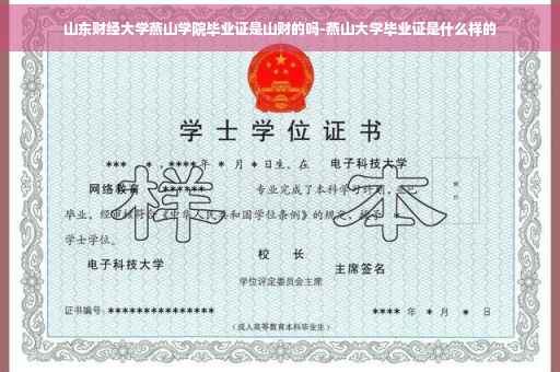 山东财经大学燕山学院的毕业证,不是山财的,而是燕山学院的。燕山学院是山东财经大学下属的独立学院,通常是三本院校。一般属于民办学校,具有独立的办学资格,学生证上盖的章,带有山东财经大学燕山学院字样,不能完全等同于山东财经大学。