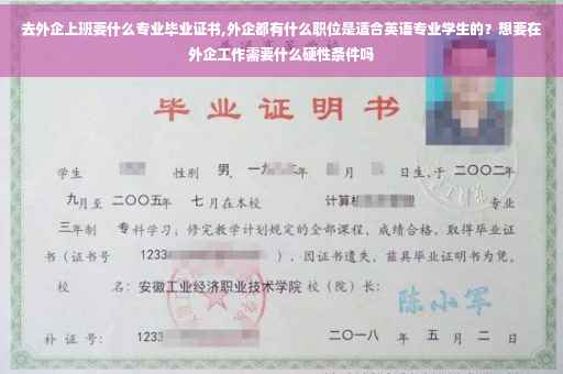 到此,以上就是小编对于去外企上班要什么专业毕业证的问题就介绍到这了,希望介绍关于去外企上班要什么专业毕业证的5点解答对大家有用。