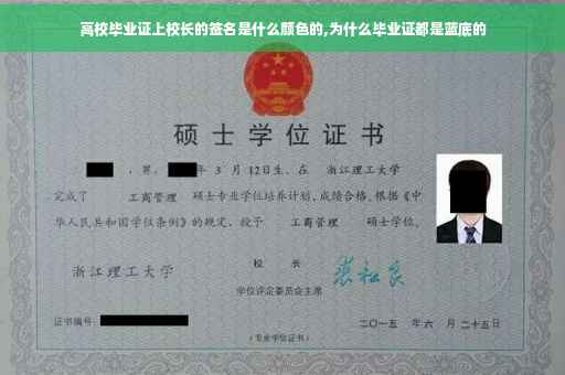 可能是跟学校的一些习惯有关而已,有些学校是红色的,也有的学校是蓝色的。校长签名章用蓝色的,可能是校长觉得蓝色是大海的颜色,是蓝天的颜色,希望学生们毕业之后能在蓝天上自由的飞翔,一种美好的象征,蓝色寄托的校长对学生们的希望