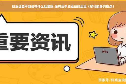 没有高中毕业证是否有影响取决于是否继续上大学。 如果继续上大学乃至读研读博,那么将来文凭就是大学本科(专科)毕业,研究生毕业或者博士生毕业,高中毕业证就用不到了,毕竟在将来就业的时候没人会在要求你拿出原来的高中毕业证,只需要有最高学历的文凭即可。但是,如果高中毕业之后不再继续接受高等教育,那么高中毕业证就是至关重要的了,因为此时高中毕业证就是本人的最高学历证明,没有高中毕业证意味着学历就只是初中毕业,对于找工作会有很大影响。
