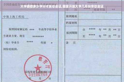 2,目前我国大部分学校都会要求学分绩点达到2.0(通常即加权平均分为70分)以上才能被授予学士学位,否则只能拿到毕业证。有些学校有特别要求,比如若出现考试作弊的行为,毕业时只能拿到毕业证,不能授予学士学位。3,目前我国大学的学位证书已不与大学英语四级考试挂钩。若干年前很多学校要求学生在校期间必须通过大学英语四级考试,否则毕业时拿不到学位证书,但该限制已经在最近几年中陆续废除。国家开放大学,每年7月和元月毕业。春季招的学员是元月份毕业。秋季的学员是7月份毕业。参加电大期末考试,两学年考完,剩下半年等待办理毕业证书。没有修完学分,不予毕业。只有全部成绩合格,方可毕业。电大的有效学籍8年。只要正常参加考试,学习,两年半可以拿到毕业证书。