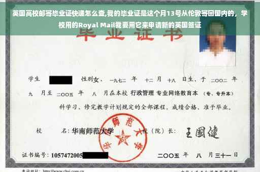 英国皇家邮政是比较垃圾的,这个单号也是不能从网上查到快递进度的! 很多中国留学生毕业后回国,学校这边大多都默认英国皇家邮政进行邮寄类似学位证,成绩单以及其他证明文件的!经常邮寄好几个月到头来邮寄丢了! 这里建议广大留学生毕业回国后,选择英国当地同学带,或者可以网上查询的快递方式进行邮寄!毕业类似学位证成绩单这类重要文件丢失,是很麻烦的一件事情!