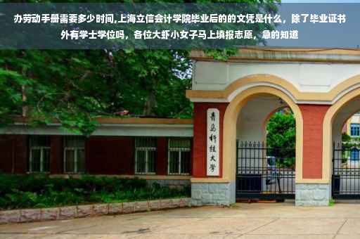 应届毕业生可以到户籍所在区县的劳动保障部门专业人员职业介绍所申请办理。当然也可以选择到本人户籍所在街道的劳动保障事务所办理,并带好以下凭证:户口本、身份证、毕业证书原件及复印件、一寸证件照两张。为了使你的个人信息更加齐全,如果在校期间已取得职业资格证书的,也应带好相应证书。《劳动手册》一般当场就可以办妥。2、是学校集体办理。如果是学校集体办理的,学校应指导学生填写《劳动力登记表》,并由学校统一填写“上海市×年度应届毕业生申领《劳动手册》名册”,盖上学校公章后,连同学生毕业证书复印件、照片等材料一并交职介所。经职业介绍所校对无误后,发给《劳动手册》。学校可以和所在地的劳动保障部门职业介绍所联系,以便提前提供服务。职业介绍所在为应届毕业生办理《劳动手册》时,免收工本费,实行免费服务。立信会计学院毕业时会有上海立信会计学院的本科毕业证书,