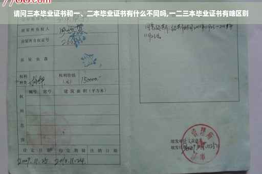 1、三本毕业证书和一、二本没有什么区别。如果有区别,考生也不愿意去读三本了。 2、第三批本科(the third batch of undergraduate)简称“三本”,是指中国大陆高等教育本科层次录取批次和录取顺序排在第三批次。三本院校的招生是根据参加全国统一高考录取的方式进行的。 一本、二本、三本都属于“普通高等学校”教育系列,学制为四年,毕业证书和学位证书都是“普通高等学校”教育证书。 3、毕业证书是做为学生毕业的凭证。学满学制规定的年限,完成教学计划规定的全部课程,各科成绩合格者的毕业证上有由全国统一的高等教育毕业证封皮页,获得毕业证书。毕业证书基本内容为姓名,性别,出生日期,毕业时间,学制,毕业专业,发证时间,电子注册号,学校校章,学校钢印,校长印等。