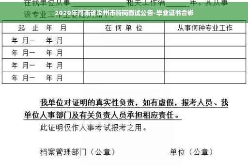 3、要求:(1)考生必需携带有效期内的身份证原件、学历证书原件、教师资格证原件、面试通知单原件(在招聘网站下载用A4纸打印)、笔试准考证原件来审验证件;(2)携带与笔试准考证同一底版2寸彩色照片5张。(3)在审查现场填写《河南省2020年农村义务教育阶段学校特设岗位教师招聘登记表》