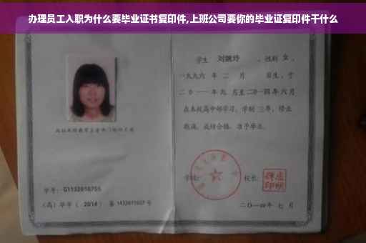 毕业证复印件是公司HR部门对员工信息的归类留档,正规的公司对职员都要求提供简历、身份证、毕业证及相关证书的复印件。若要求提供原件,是为了核对身份,可以根据复印件原件比对来证明新进职工真实身份与学历真实情况。