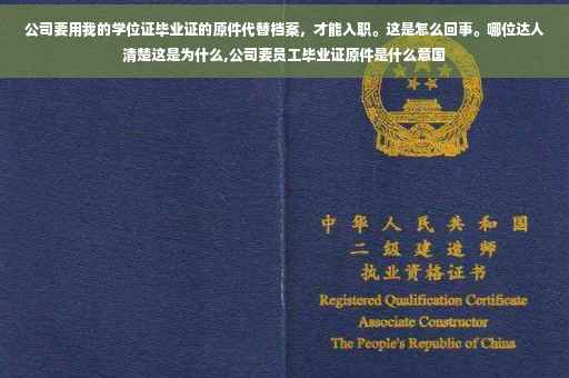 你公司要求你将毕业证,专业资格证书原件交由公司保管,可能有这样一种情况,国家对一些特殊行业要进行监管,对公司内的专业人员有从业资格的要求。因此,每年要进行年检审核,其中专业技术人员的证件就是年检的重点项目,被检查公司按国家的规定应有多少专业技术人员,而这些人员的学历,职称,岗位职业技能证书就是必检材料。
