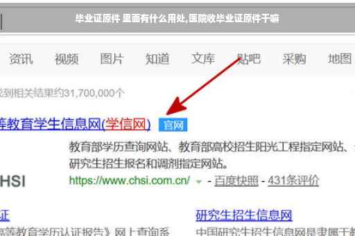 毕业证书原件是指毕业证书的正本,有些单位在面试通过办理入职手续的时候需要出示毕业证原件与提交的复印件比对。有的则直接上学信网进行证书核对,学历证书原件对个人而言是重要身份文件,所以要妥善保管,不能随便外借和遗失,一旦丢失,只能回原校补办相关证明,但不会补办相关证书。