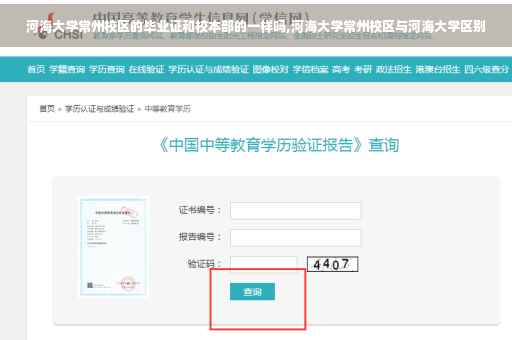 河海大学常州校区的毕业证与河海本部的毕业证没有区别。 因为河海大学常州校区是河海大学的分校,分校生的本科毕业证书由总校统一颁发,证书的封皮样式与文字与总校一模一样,发的都是河海大学的毕业证,没有常州校区字样。
