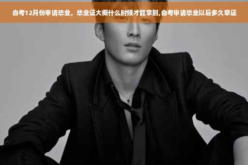 首先自考12月份申请毕业,在来年4月份左右可以领取毕业证书。自考一年有两次申请毕业的机会,分别在6月份和12月份,考生需要按照流程办理毕业申请。