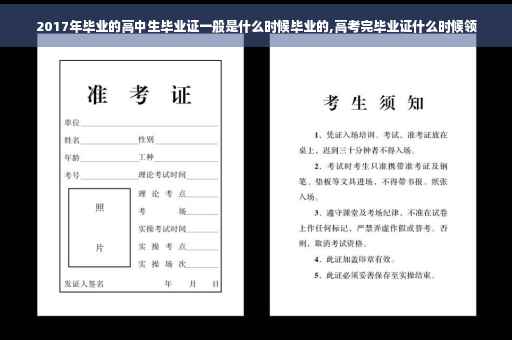 2017年的高中毕业证一般是高考前发,也就是2017年6月初高中毕业。这种安排主要是我们国家的普通高考衔接,国家普通高考一般安排在每年六月份的7、8、9三天,高中学校一般都会在学生高考前夕,安排学生毕业离校,去参加高考。也就是高考前高中学生就毕业了。