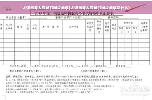 大家好,关于大连自考大专证书图片要求的问题,于是小编就整理了4个相关介绍大连自考大专证书图片要求的解答,让我们一起看看吧。