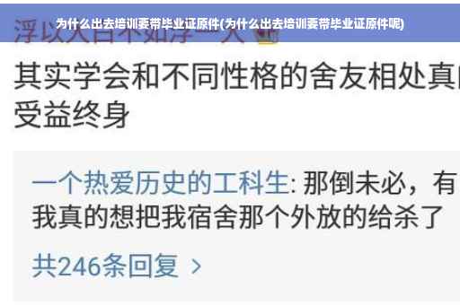 到此,以上就是小编对于为什么出去培训要带毕业证原件的问题就介绍到这了,希望介绍关于为什么出去培训要带毕业证原件的5点解答对大家有用。