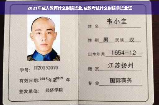 2021年的成人教育是三年后毕业,2021年的成人教育是三年制的学制,他是大专性质的,也是非全日制的,假如你2021年报上了成人教育,他会给你发一个网络性质的视频的学业,你每天在上面观看视频,学习会在三年后进行一个考试,考过了之后就是毕业了