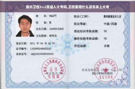 临沂卫校3+2上的大专不属于成人大专。而是属于国家教育部规定的全日制大专。是初中毕业生上中专三年。如何参加大专考试,大专再上二年。毕业证书并不是成人大专毕业证书,如果通过参加全国统一高考的方式考取大专院校。