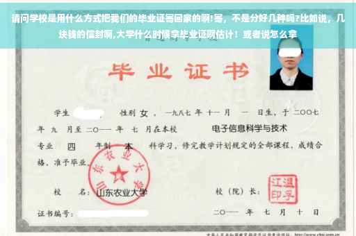 一般来说,学校是不会给学生寄毕业证的。毕竟还是有一定的概率会丢失,但是多数学校都可以让同学代领。或者发到你的班主任那里,由班主任代为寄回。邮寄毕业证绝大多数学校都是使用的EMS。22元。呵呵