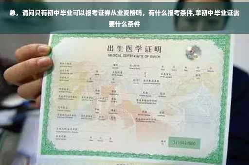 您好,很高兴为您回答! 初中毕业,证券从资格是不能考试的。 因为,证券从业资格报考条件: (一)具有完全民事行为能力; (二)具有高中以上文化程度; (三)公募基金管理人、私募基金管理人的现任/拟任高级管理人员,包括法定代表人/执行事务合伙人(委派代表)、董事长、总经理、副总经理、机构合规/风控负责人/督察长等;基金托管人、公募基金销售机构的业务负责人等; (四)中国证监会规定的其他条件。 所以证券从业考试必须年满十八周岁,具有高中以上文化程度,才能参加。