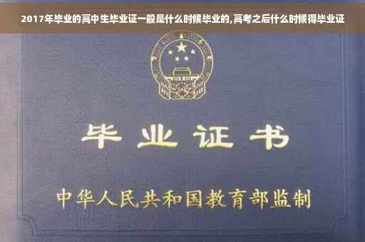 2017年的高中毕业证一般是高考前发,也就是2017年6月初高中毕业。这种安排主要是我们国家的普通高考衔接,国家普通高考一般安排在每年六月份的7、8、9三天,高中学校一般都会在学生高考前夕,安排学生毕业离校,去参加高考。也就是高考前高中学生就毕业了。