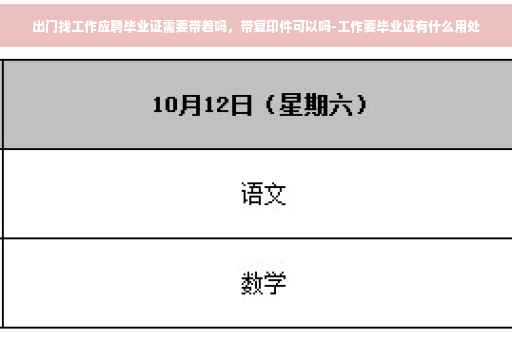 出门找工作应聘 毕业证当然要带 ,毕业证可以证明你的学历 ,现在很多单位招工 他都必须看你的原件 ,现在的年轻人 找份工作也不容易 ,各行各业都竞争的非常的激烈 ,现在每年的 大学 毕业生也是非常多的 ,这些孩子出来 都要去找工作 ,而工作岗位又是有限的 ,所以的正式 面对 应骋单位