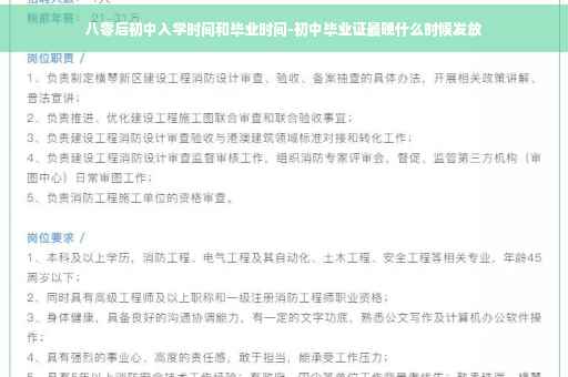 1980年出生的人,在1995年的9月1号正式进入到初级中学上学,毕业时间是在1997年到6月30号正式毕业,考入高中。80后的最后一代,也就是1989年出生的人,在2004年9月1日正式进入到初级中学,毕业时间是在2007年6月30号毕业。