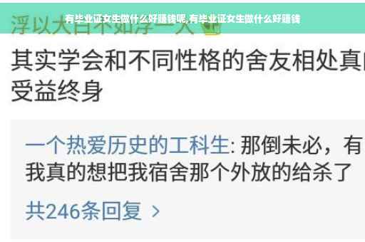 到此,以上就是小编对于有毕业证女生做什么好赚钱的问题就介绍到这了,希望介绍关于有毕业证女生做什么好赚钱的1点解答对大家有用。