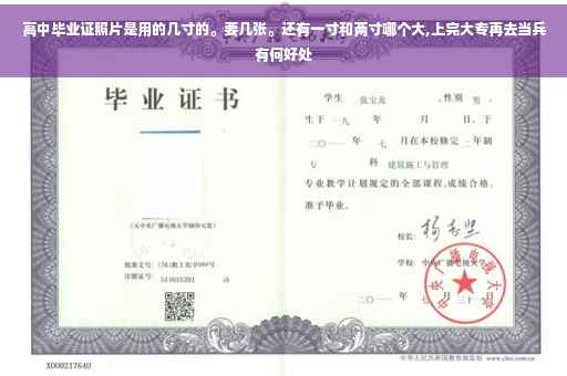 高中毕业证照片应该用的两寸的,红底,要1张就够了。不过高中毕业证不是全国统一的,有时候全市的各个学校都不一样,所以要根据学校的要求。2寸比1大。