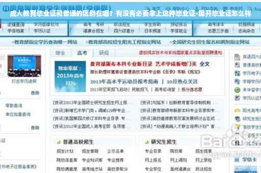 总之,成人教育毕业证和普通高校毕业证是有很大区别的。但也有很多相同点。如果手中只有高中或者中专学历。那么也是很有必要拿上成人教育学历的,起码来说不要让自己落后太多。