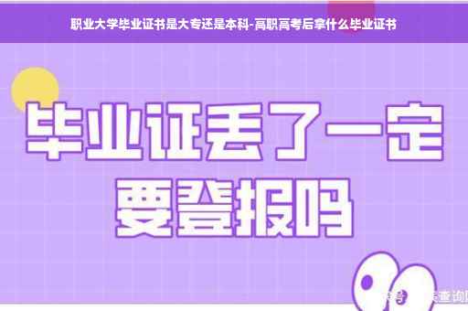 职业大学毕业证书是大专,职业本科一般是指高等职业本科,高等职业本科(简称高职本科)是全日制本科学历教育的一种,学位为专业学士,高职本科与普通本科共同构成中国高等教育体系的全日制本科层次。大专指的是专科,即专科教育,是高等教育的组成部分,是大学学历层次之一,专科教育的基本修业年限为二至三年,非全日制高等学历教育的修业年限应当适当延长。