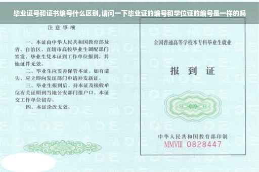 毕业证的编号和学位证的编号是不一样的,因为在大学读书期间只要是能够按时完成所修课程的学生都可以拿到毕业证。
