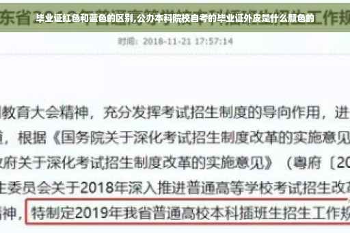 教育部门为了区别毕业证的种类,才有了蓝色的和红色外皮之分,四年制在校学习毕业为红色(就是参加普通高考正规录取的国家普通高校应届毕业),其余的什么函授、夜大之类毕业的都是蓝色!!!