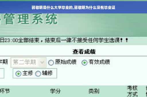 郭敬明表示,对整个大学的记忆都非常浅,也不怎么上课。这让郭敬明在大学里的成绩很不理想,多次重修,最后导致没有拿到毕业证。