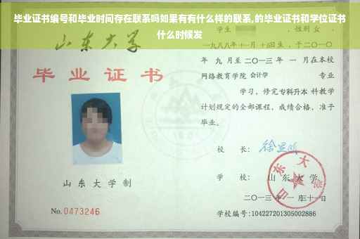 应该是没有联系的,毕业证是学校发的,它的编号序列是以一个学校为准的,而学位证是国家教委发的,只是学校有权授予而已,它的编号至少是以省为序列的,也话在你们同系同专业同班的几十个人里有一些小联系,但每年每个学校每个专业每个班的人都数量不同,再交这种不同放大到一个省或全国,那肯定就没法联系起来了。