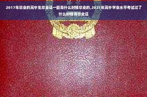 2017年的高中毕业证一般是高考前发,也就是2017年6月初高中毕业。这种安排主要是我们国家的普通高考衔接,国家普通高考一般安排在每年六月份的7、8、9三天,高中学校一般都会在学生高考前夕,安排学生毕业离校,去参加高考。也就是高考前高中学生就毕业了。
