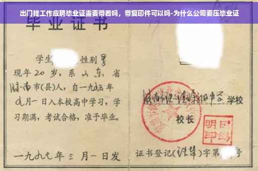 出门找工作应聘 毕业证当然要带 ,毕业证可以证明你的学历 ,现在很多单位招工 他都必须看你的原件 ,现在的年轻人 找份工作也不容易 ,各行各业都竞争的非常的激烈 ,现在每年的 大学 毕业生也是非常多的 ,这些孩子出来 都要去找工作 ,而工作岗位又是有限的 ,所以的正式 面对 应骋单位
