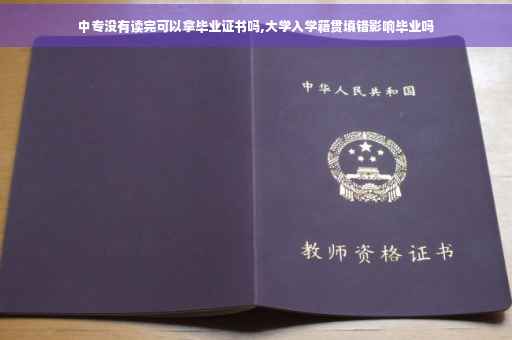 中专没有读完不可以拿毕业证书。毕业证书是做为学生毕业的凭证。学满学制规定的年限,完成教学计划规定的全部课程,各科成绩合格者的毕业证上有由全国统一的高等教育毕业证封皮页,获得毕业证书。毕业证书基本内容为姓名,性别,出生日期,毕业时间,学制,毕业专业,发证时间,电子注册号,学校校章,学校钢印,校长印等。