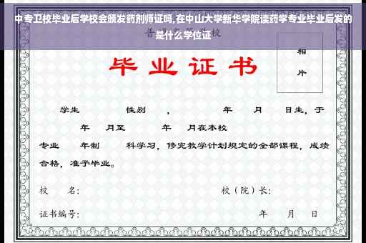 卫校毕业以后,学校是不会发给药剂师证的,嗯,只会嗯发给相关的呃呃毕业证。嗯,毕业以后自己要嗯根据报名药剂师的条件。嗯,中专毕业以后需要工作几年才能够报考助理药剂师,所以说需要呃有相关的工作经历,然后达到要求后报考报名参加药剂师的考试,这样的情况下嗯取得职称,才能够取得药剂师的职称。