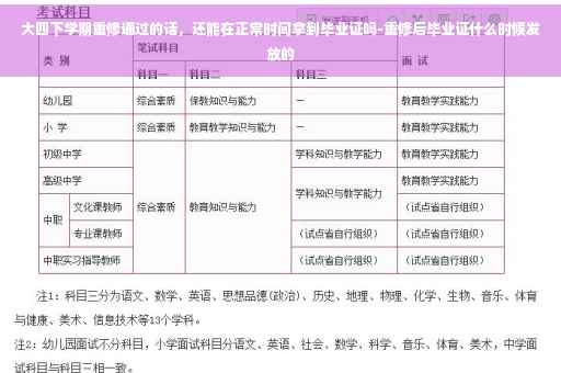 一般来说,各大学会在六月份审查相关的学分要求,如果重修科目能在审查之前安排考试并通过,则可以按时领取毕业证;如果不能在这之前进行重修并通过,则会延期领取毕业证。各大学一般会分两批或三批发放毕业证书。