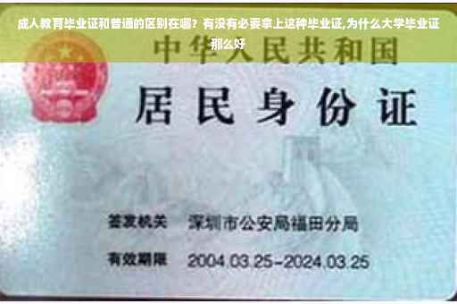 总之,成人教育毕业证和普通高校毕业证是有很大区别的。但也有很多相同点。如果手中只有高中或者中专学历。那么也是很有必要拿上成人教育学历的,起码来说不要让自己落后太多。