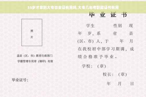有用,35岁,正是要努力的时候,大专学历来得及时啊!你有大专学历,和没有大专学历,你去找工作时,就会有明显的不同!很多单位在招聘时,把大专学历设置为入门条件,你很多岗位就用学历进行一次挑选!还有职业资格证书考试,基本上都是大专起步!